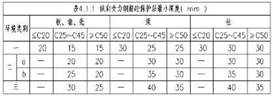 1)縱向受力鋼筋混凝土保護(hù)層厚度不應(yīng)小于縱向受力鋼筋的公稱直徑,且應(yīng)符合表4.1.1的規(guī)定。