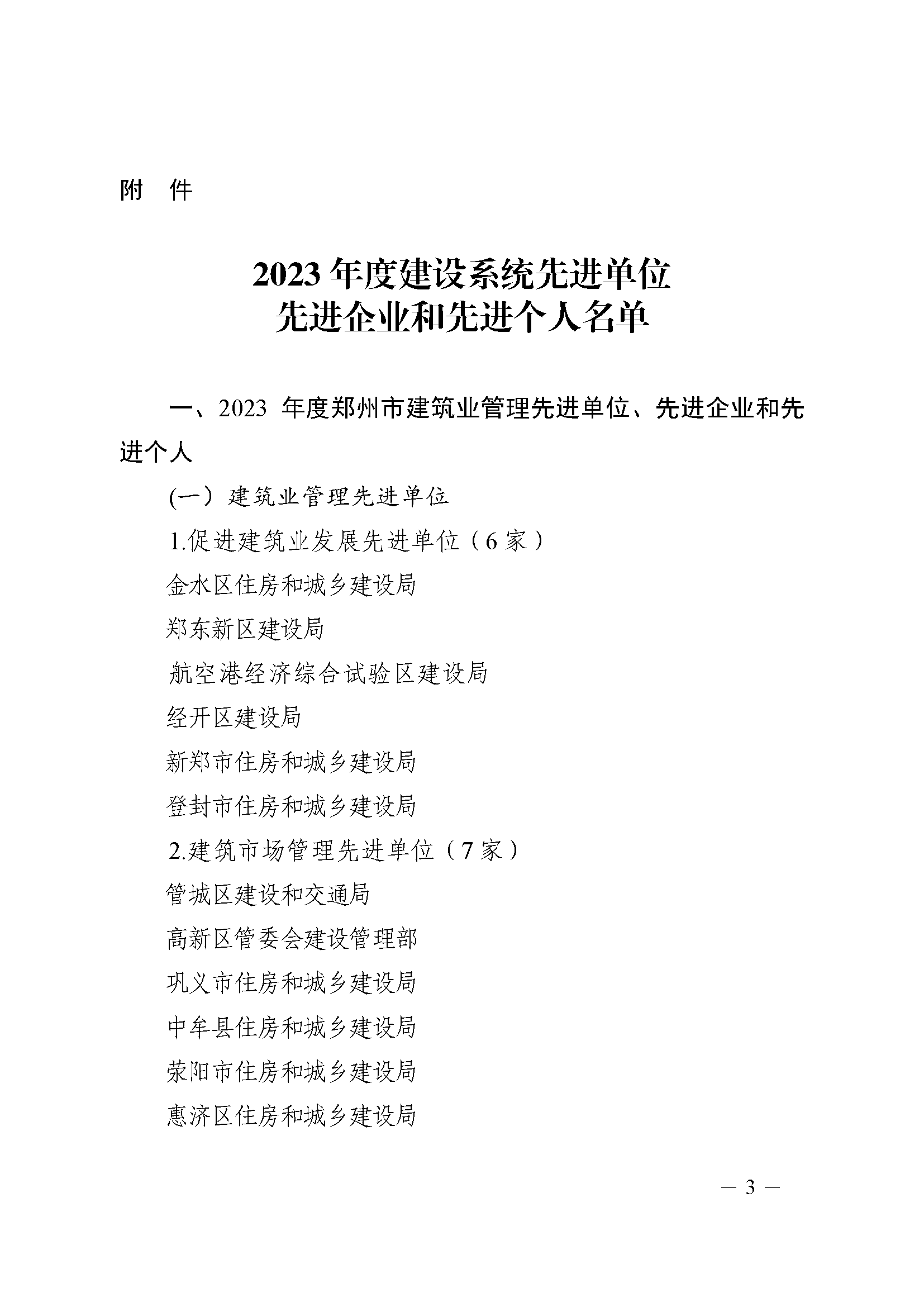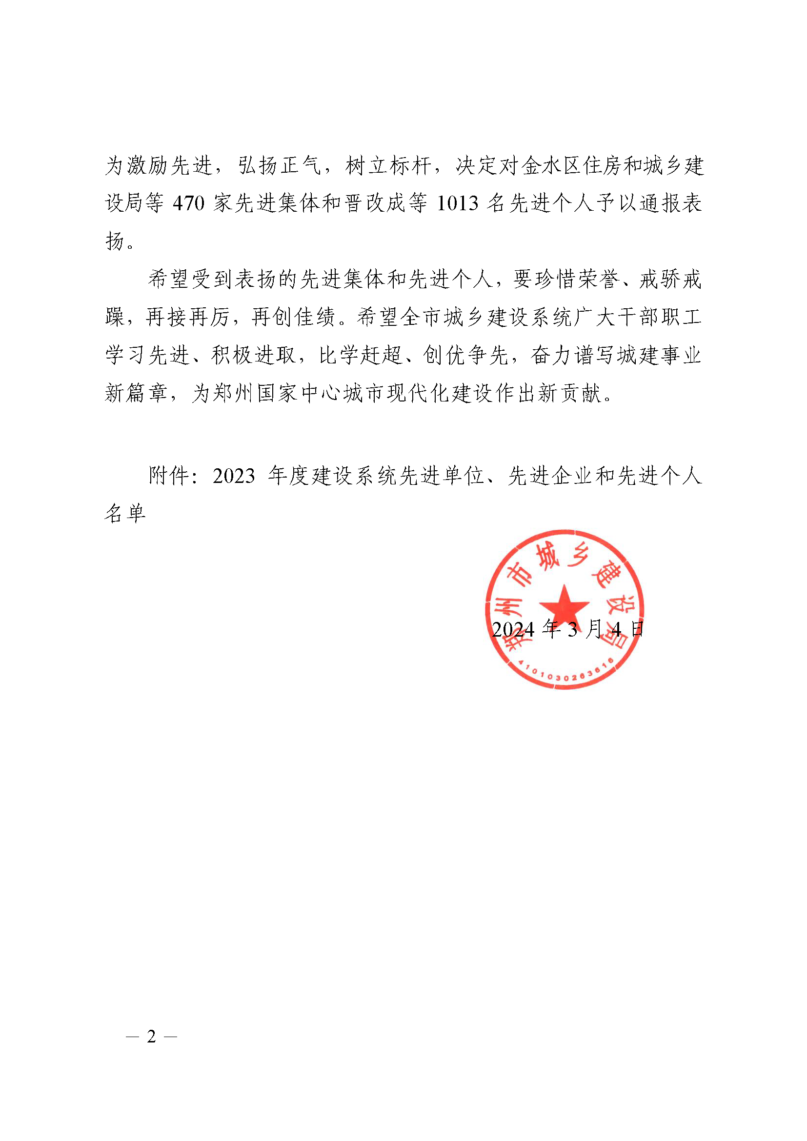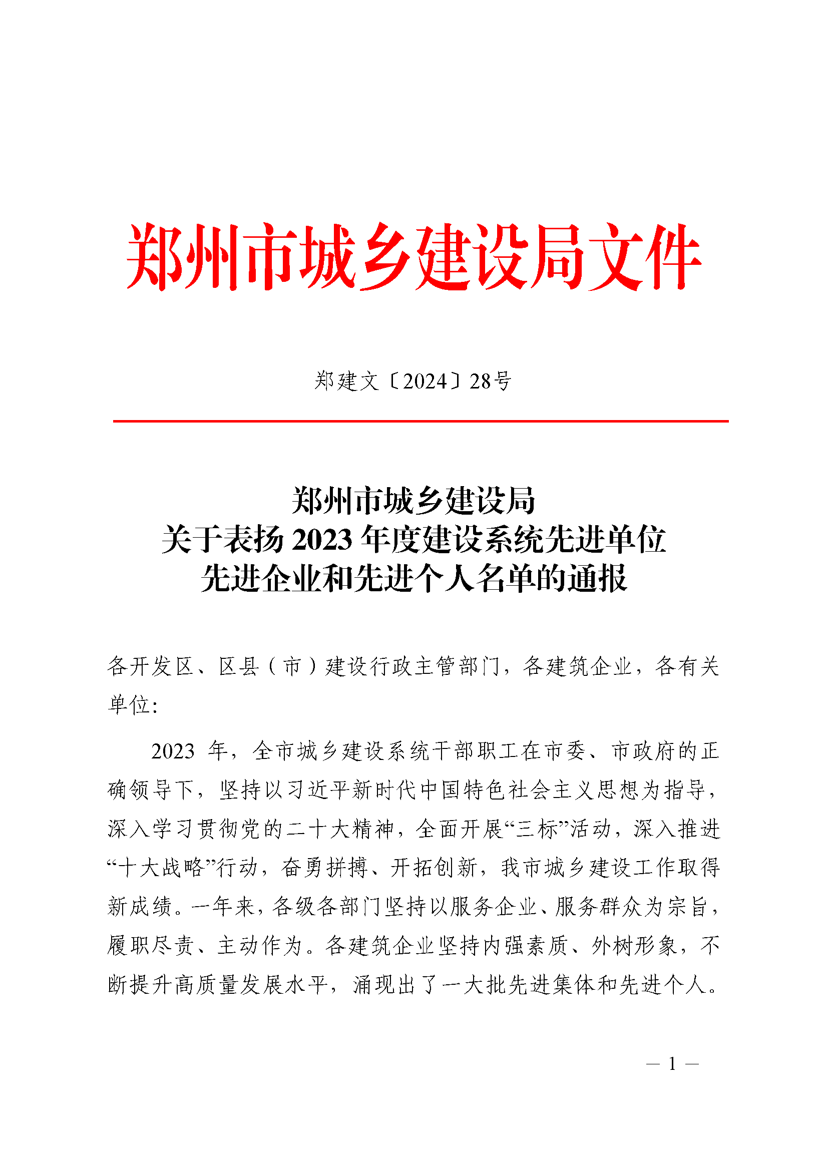 鄭州市城鄉(xiāng)建設(shè)局關(guān)于表?yè)P(yáng)2023年度建設(shè)系統(tǒng)先進(jìn)單位先進(jìn)企業(yè)和先進(jìn)個(gè)人名單的通報(bào)